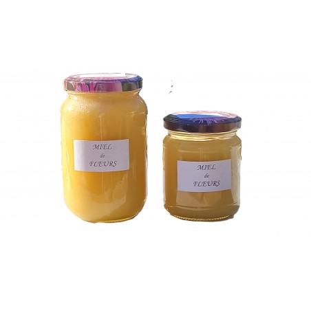 Miel de fleurs analysé, à dominance de tournesol, phacélie, trèfle et sarrazin. Non chauffé, non défigé.